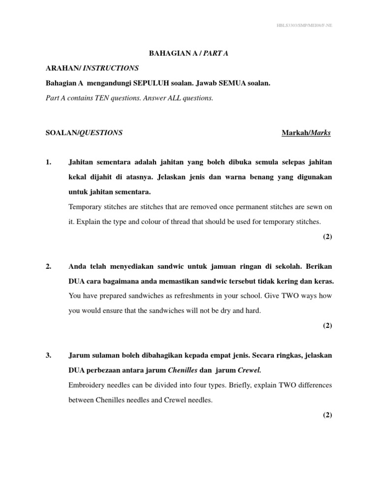 Contoh Soalan Seksyen A Klik Gambar Untuk Contoh Soalan Penuh Exam Education Tips. Latihan ulangkaji Sains Rumah Tangga Tingkatan 4. Digunakan untuk mengukur di atas kain dan kertas.